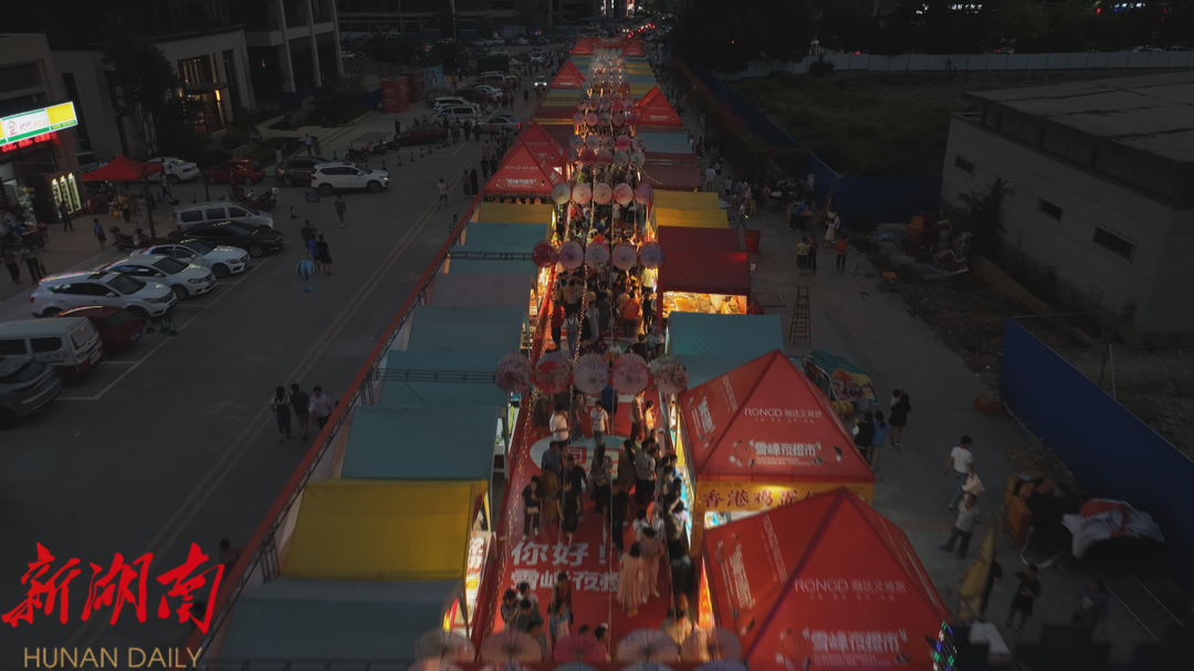 湖南融达文商旅有限公司总经理 肖科新介绍:“ 我们设置了美食、文创、娱乐等摊位近一百五十个,拉动市民消费,促进当地经济发展,带动五百多名群众增收。”