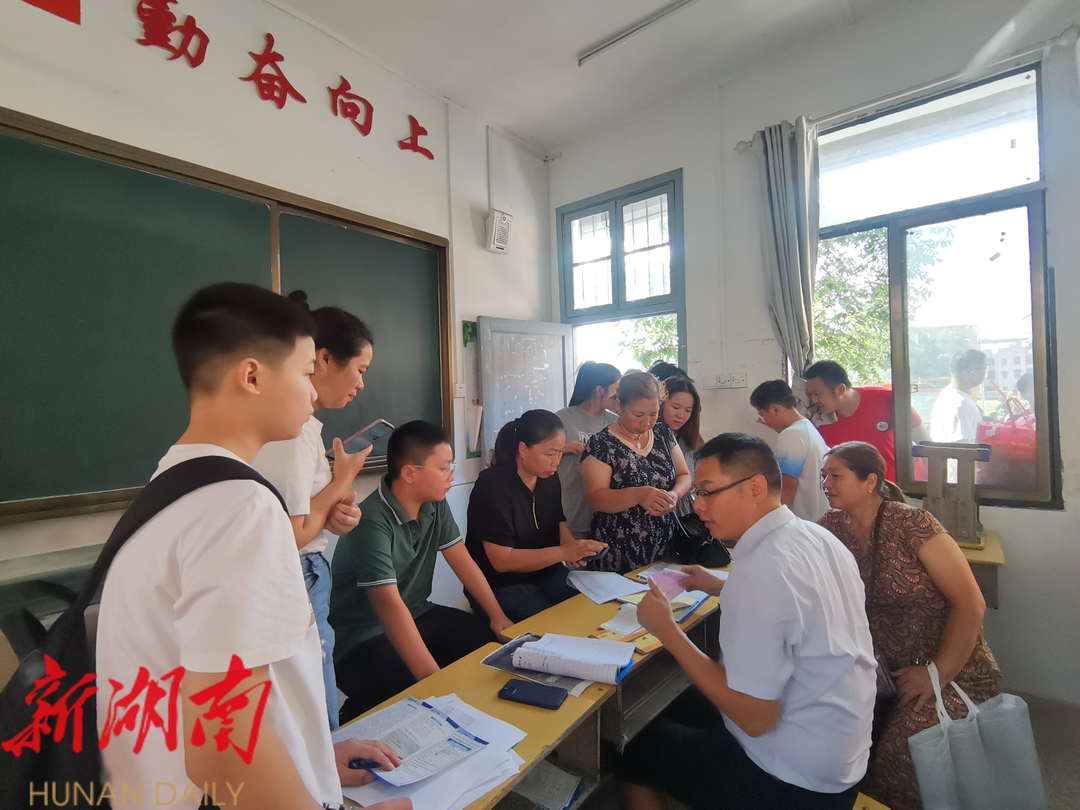 开学当天,树德学校设立了报到注册、接待咨询、安全、宣传、卫生、后勤保障等6个工作小组,分工明确,责任到人。学校采取错峰入学,校门口值班领导和保安人员维持秩序。在信息栏前,老师细心帮助家长查询学生分班信息。教室内,班主任为学生办理报名手续,收集资料、登记信息,还不时与学生亲切交流。在宿舍区,工作人员耐心地为学生分发被褥等生活物品,同时安排好寝室。教室走廊等处,后勤处事先准备好饮用水,方便家长饮用,学校开学工作安全有序进行。