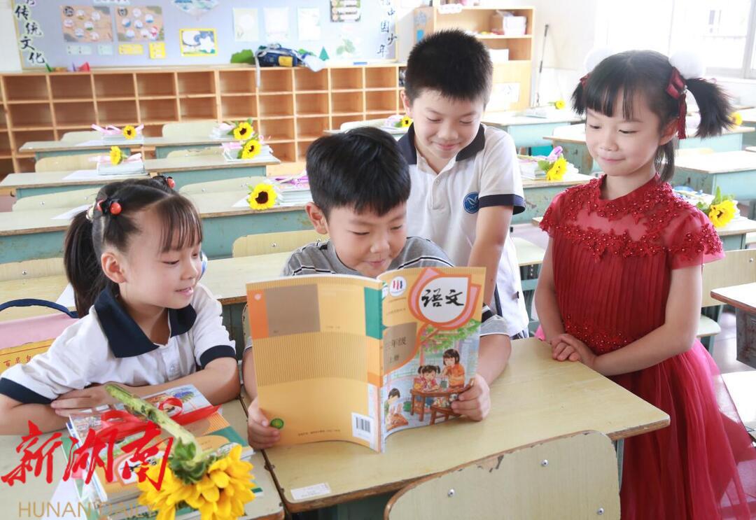 拿到新书后,不少孩子们更是喜不自胜地一起提前翻阅和分享,充分彰显了该校孩子们热爱学习的良好精神风貌。