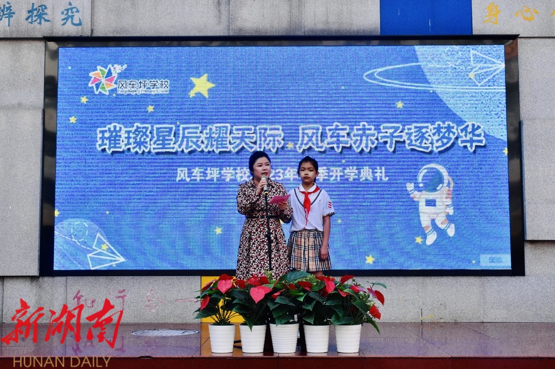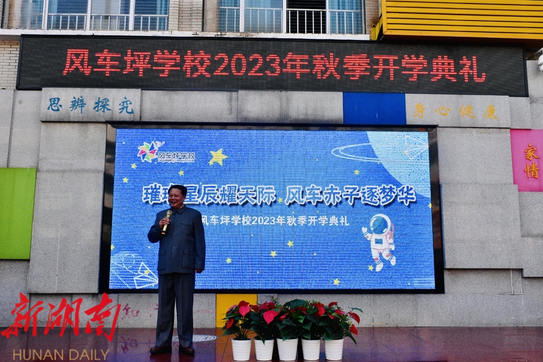 风车坪学校秋季开学典礼以思政教育、国防教育、理想信念教育贯穿始终,激励风车学子树立正确的偶像观,以红色精神为引领,靠近光、追逐光、成为光、散发光。风车坪学校长杜雅莉勉励孩子们,在新的学期,风车少年要承载“力学以报国”的初心,携鼓舞与创新的力量,仰望星空,脚踏实地,把点滴汗水凝聚成累累硕果,为实现中华民族伟大复兴的中国梦积蓄力量。