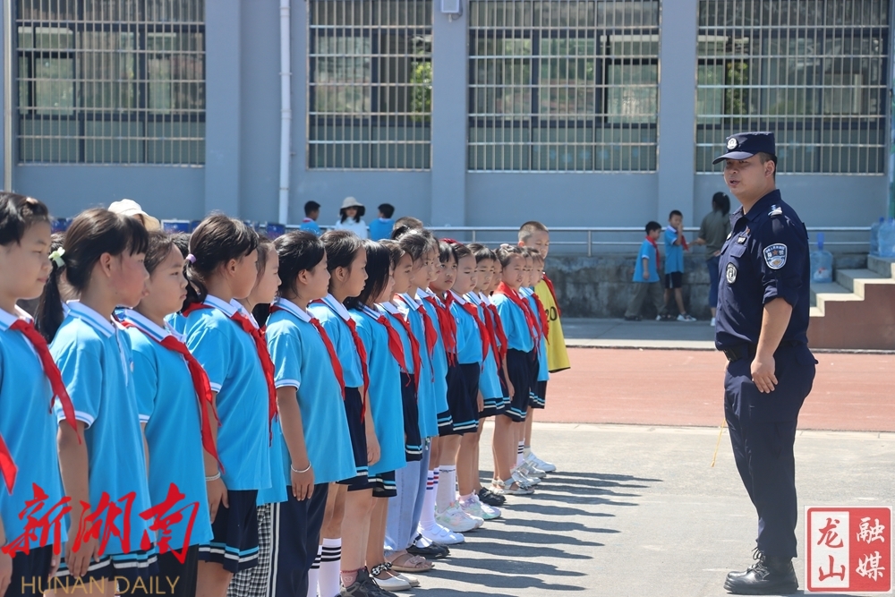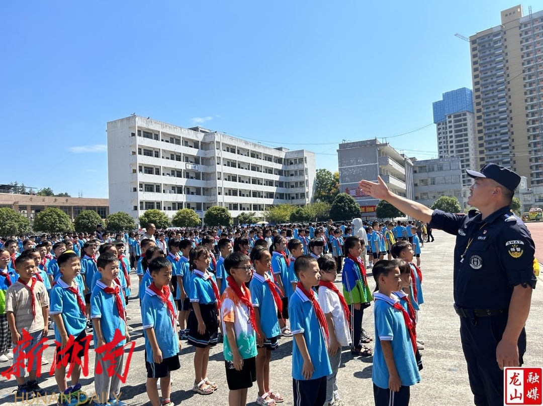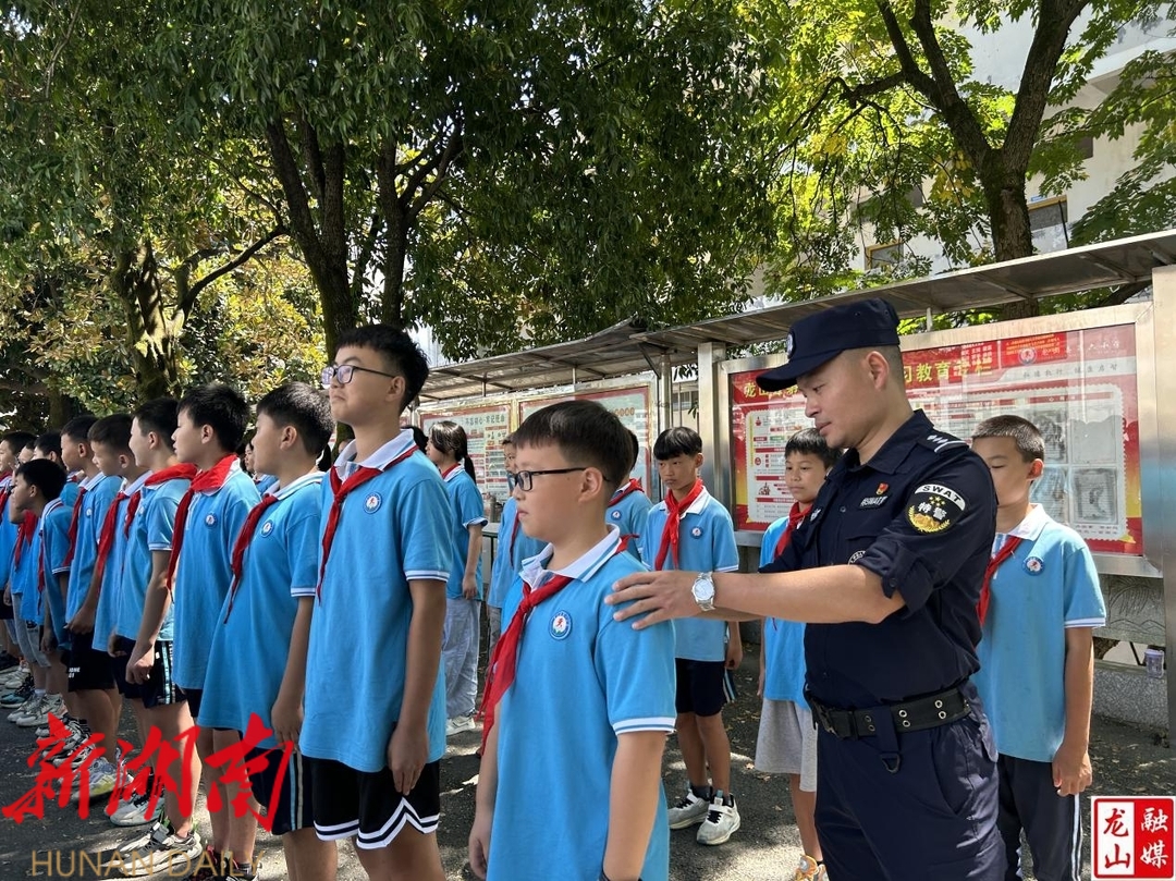 龙山县融媒体中心9月5日讯(通讯员 康友权 王维林 曹享琼 向庆芝 )9月4日,县公安局特巡警大队队员受邀为第六小学生开展军训活动。