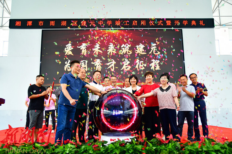 雨湖新闻网讯 (记者 李南曦)“东风开画宇,旭日映楼堂。祥麟聚廊径,鸣凤栖青梧。书声催四时,学子擎壮志。梓楠同受范,桃李广成才。”9月4日,建元中学新校竣工启用仪式暨开学典礼活动在建元学子郎朗诵读《建元赋》的声音中拉开序幕。副区长伍颜,天元盛世集团党委书记沈晓明等与1507名建元学子共享仪式。