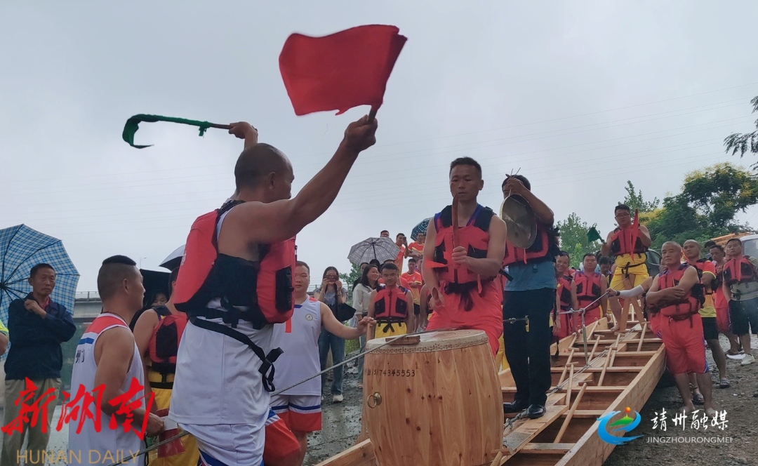 靖州融媒9月6日讯 (记者 钟屿右)9月3日上午,靖州苗族侗族自治县龙舟协会在渠阳镇团结村二桥高速桥下码头举行新龙舟下水仪式,上演了一场“飞桨逐浪竞风流”的视觉盛宴。