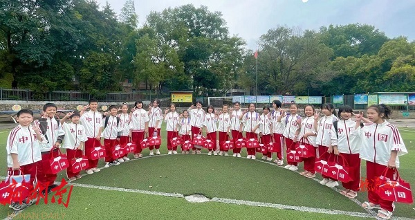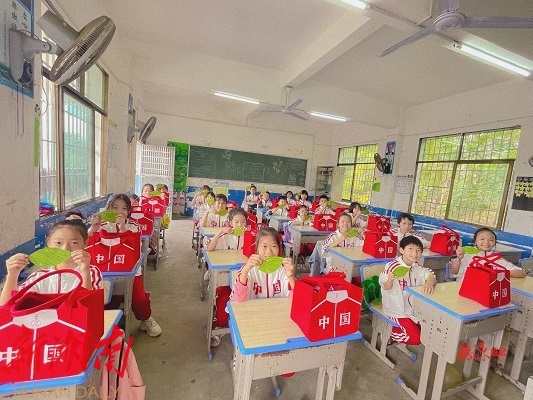 当天,拿到“礼包”的孩子们,小心翼翼拆开精美的包装袋,轻抚绣着鲜红“中国”二字的崭新校服,个个爱不释手。他们手捏针线,照着老师的样子,一针一线将校牌贴缝在袖臂上,眼神里写满专注……拉上拉锁,抚平衣领,嘴角上扬,整齐划一的校服让镜头前的孩子们精气神一下子提振起来。
