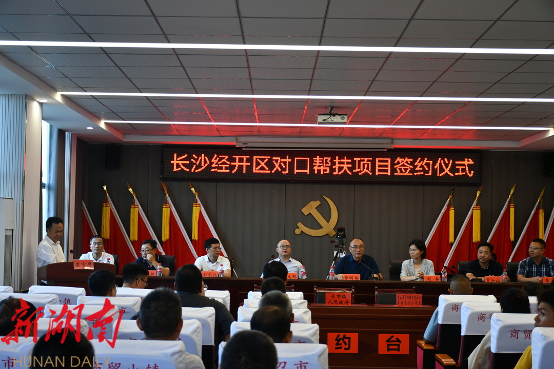 经过长沙经开区的对口帮扶,自2017年以来,龙山县召市镇 在医疗、教育、基础设施、人才培训等民生方面发生了诸多变化。赵文骄一行前往召市镇调研了大兴村稻米文化展览馆、镇中心幼儿园、双进社区红薯粉加工厂、镇污水处理站、烟叶烘烤工场、镇服务中心改造等项目,见证了双进社区集体经济红薯粉加工项目、大兴村大米加工及基地建设项目等两个对口帮扶项目签约,并在座谈会上听取了召市镇和驻镇工作队关于长沙经开区对口帮扶工作有关情况汇报。