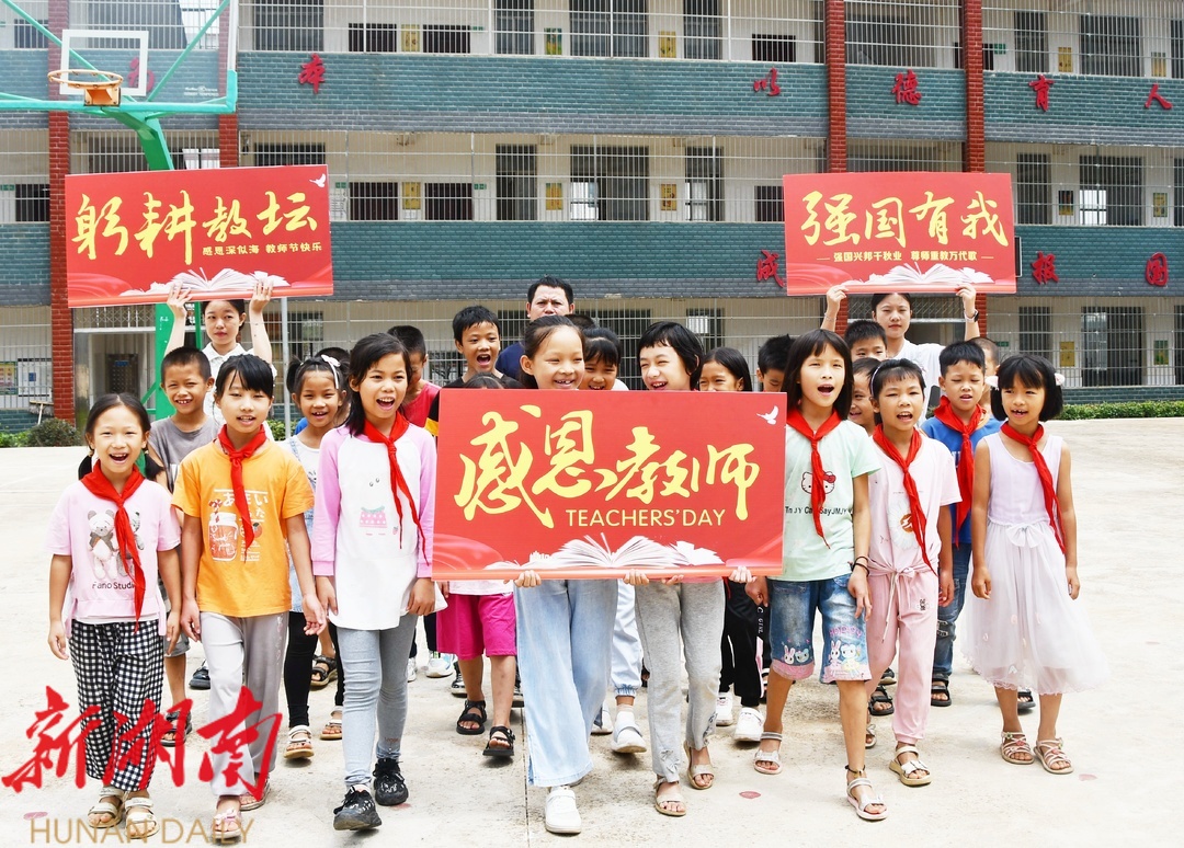新江永客户端讯(通讯员 田如瑞)9月7日,江永县工业园集中区海相希望小学开展丰富多彩的教师节活动,师生们在欢声笑语中迎接教师节。教师节临近,江永县各中小学校幼儿园校纷纷开展丰富多彩的教师节主题庆祝活动,孩子们通过制作手工贺卡、诗朗诵等方式,向辛勤付出的老师献上美好的祝福,表达感恩之情。