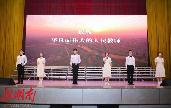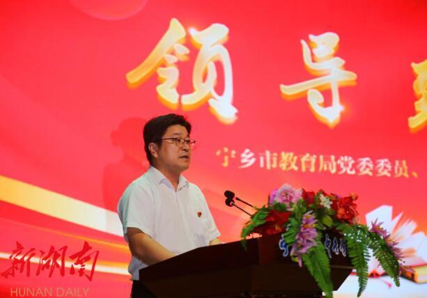 易富饶代表宁乡市教育局向全体教师致以节日的祝贺,寄语老师们要切实担负起为党育人、为国育才使命,勉励同学们要立志拼搏、重视安全、修身养德、勤学善思,努力成长为国家和社会期待的时代新人。