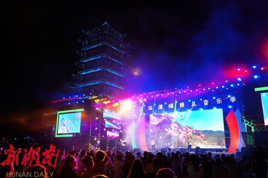 湖南日报·新湖南客户端 9月2日讯(记者 龚文婷)9月2日晚七点半,2023武陵源嘀格儿音乐季秋韵风尚之夜在武陵源标志门广场燃情开唱,吸引了大批游客和周边市民前来观看。