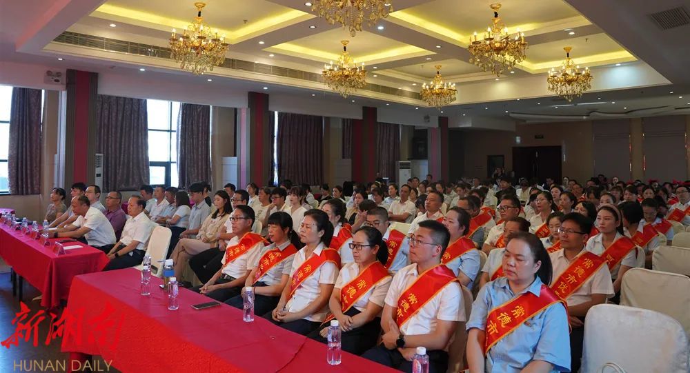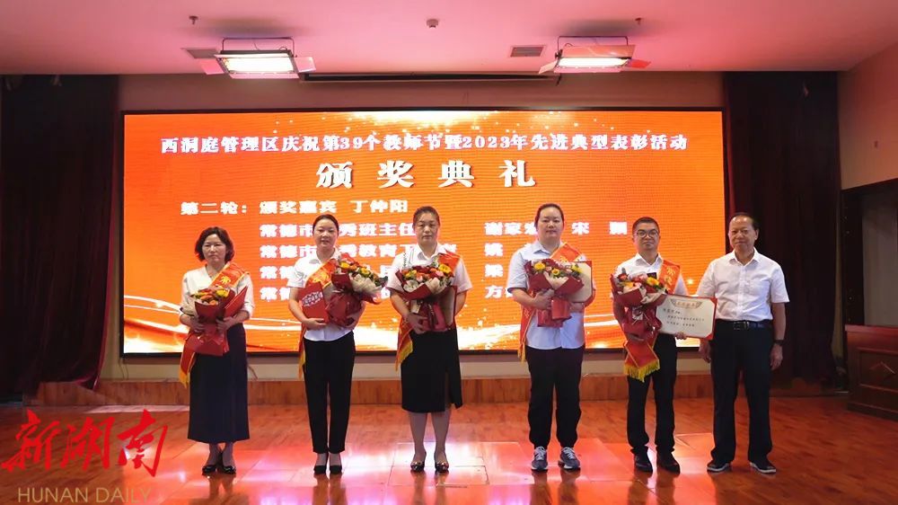 最后一项议程,大会宣读了常德市乡村红烛奖、常德市师德标兵、常德市优秀青年教师、常德市优秀教师、常德市优秀班主任、常德市优秀教育工作者、常德市最美人民教师、常德市优秀校长、区师德师风模范、区优秀班主任、区教学能手、区优秀教学团队的表彰通报,并为获奖教师颁奖献花。