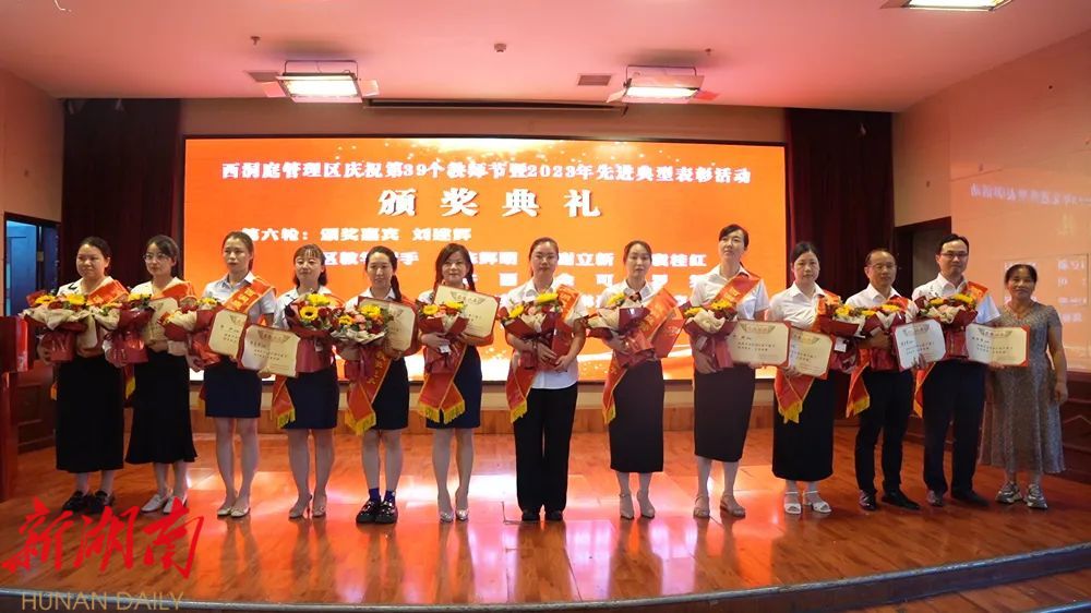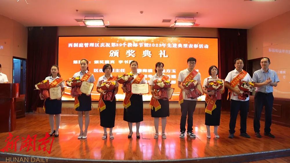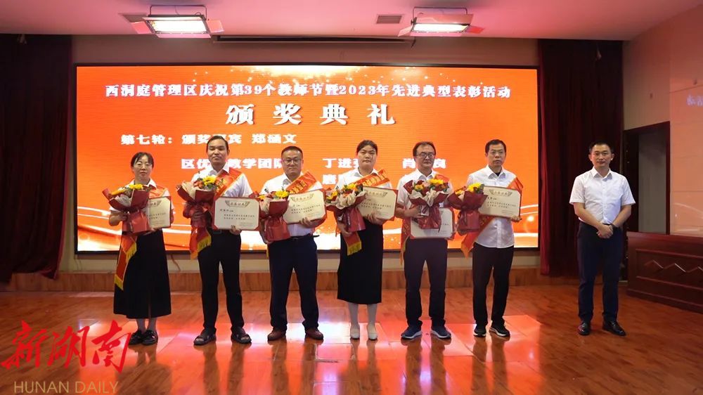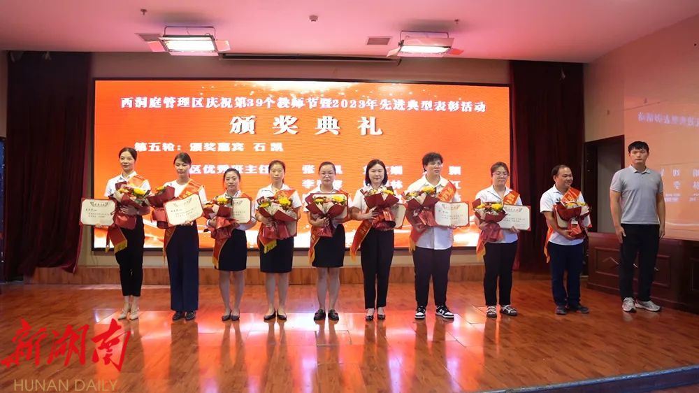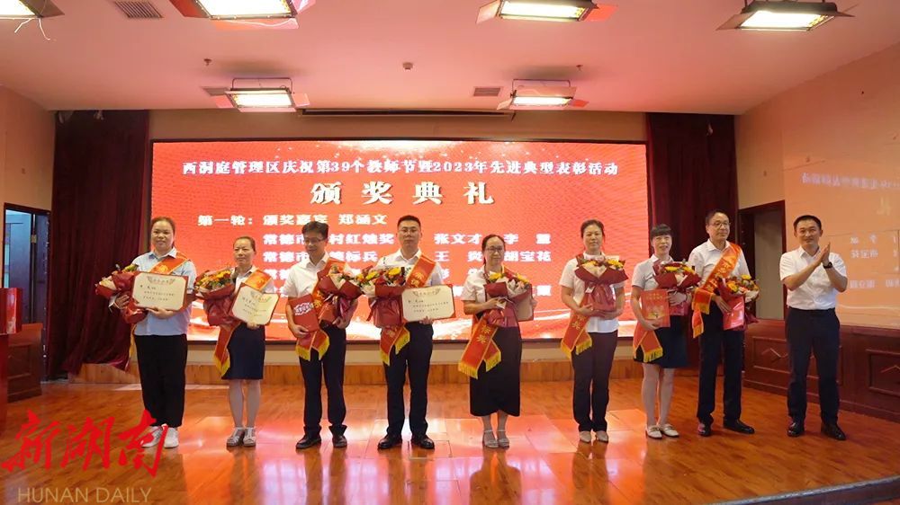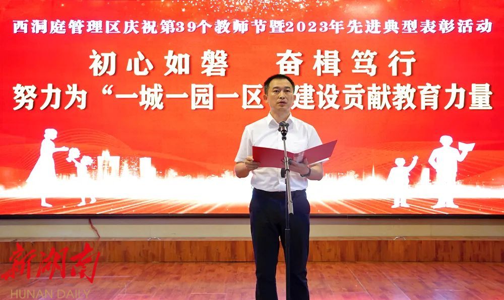 9月8日,在教师节即将来临之际,西洞庭管理区举行庆祝第39个教师节表彰大会。区党委委员、管委会副主任郑涵文出席并致辞。