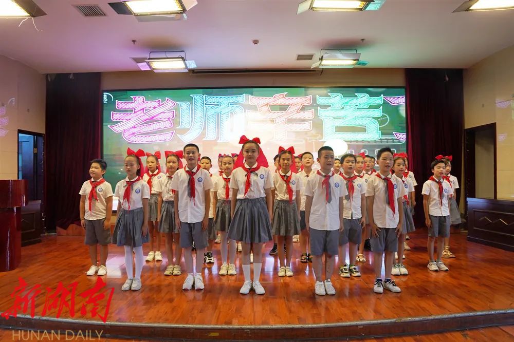 “老师,您辛苦了!”少先队员们上台为大会献词,代表全区莘莘学子为教师们送上诚挚祝福,表达对西洞庭教育发展的美好祝愿。一抹抹鲜艳的红领巾在胸前闪耀,一句句铿锵的献词在会场回响,深深感染着在场的每一位教师代表。