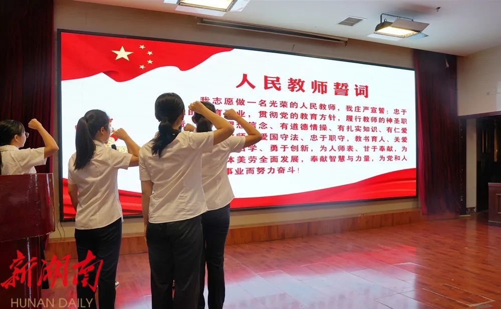 “我志愿做一名光荣的人民教师,我庄严宣誓……”随后,全体教师代表举起右拳、目光坚毅,重温了《人民教师誓词》,宣誓仪式热烈而鼓舞人心。四位先进教师代表先后发言,纷纷表示将永葆对党的教育事业无限忠诚,担当重任、托举希望,努力培养更多德智体美劳全面发展的时代新人。
