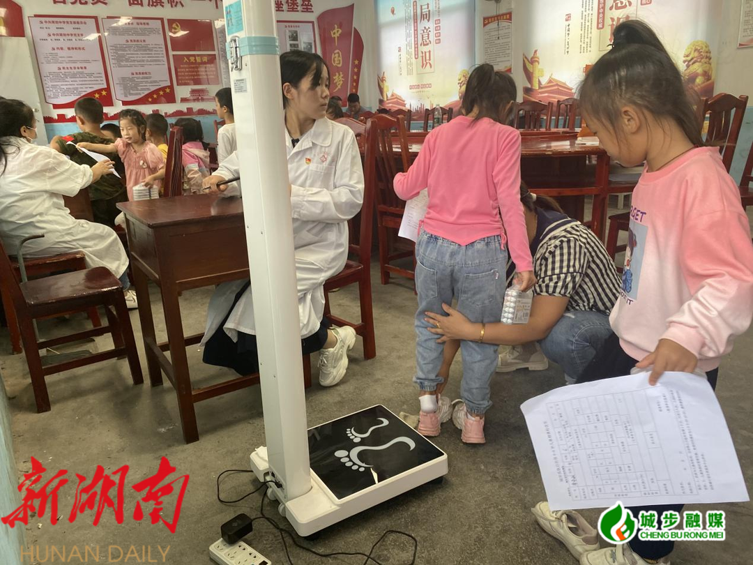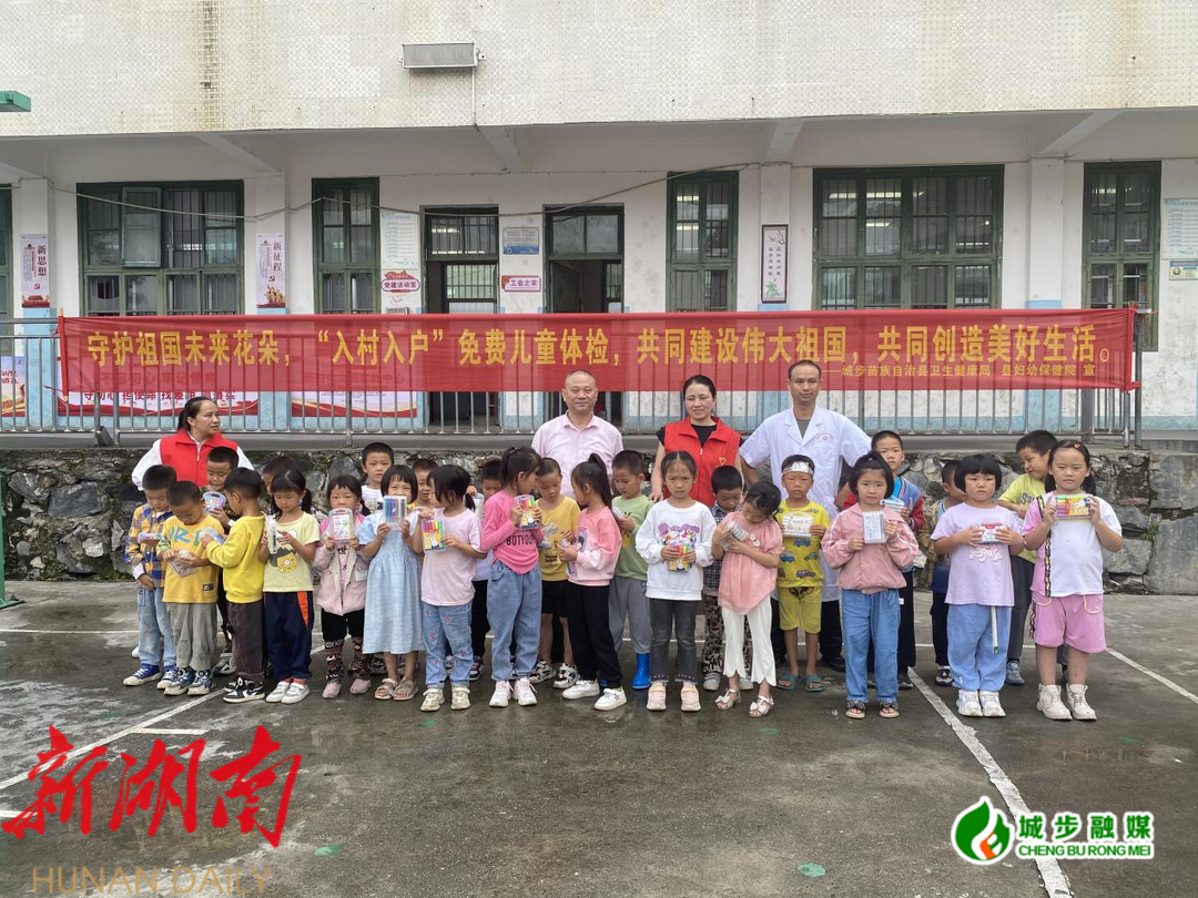 新城步客户端9月11日讯 (通讯员 刘巧玲)为深入贯彻落实习近平总书记关于民族工作的重要讲话精神及中央、省、市民族工作会议精神,城步卫健局以“民族团结进步宣传月”主题活动为契机,在全县相关乡镇开展“入村入户” 儿童 免费健康体检活动。9月8日,该局医务工作人员来到蒋坊乡民族中心小学为0-6岁儿童免费体检。