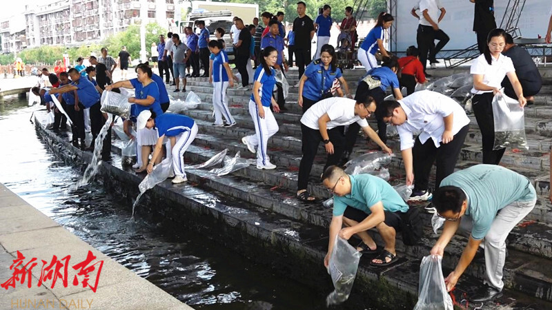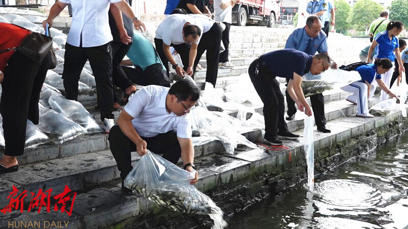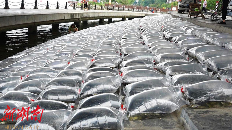 活动现场,各部门人员及热心市民将一袋袋分装好的鱼苗,缓缓倒入水中,为芷江水域再添生机和活力。据了解,此次放生的鱼种类繁多数量大,有草鱼、青鱼、鳙鱼、鲢鱼等,共计200万余尾。