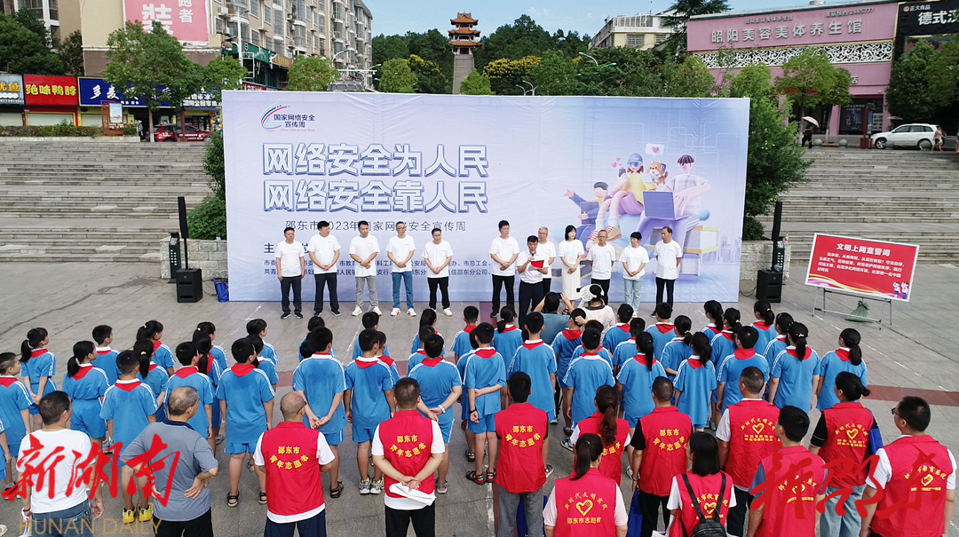 新邵东客户端9月11日讯(记者 曾超众 实习记者 赵偲苗 刘亦可) 9月11日上午,邵东市在昭阳广场启动2023年国家网络安全宣传周活动,通过文明上网宣誓、网络安全知识竞答、网络安全法律法规宣传等方式,增强市民的网络安全意识,提高大家的网络安全防护技能。市委副书记、统战部长刘家豪出席活动。