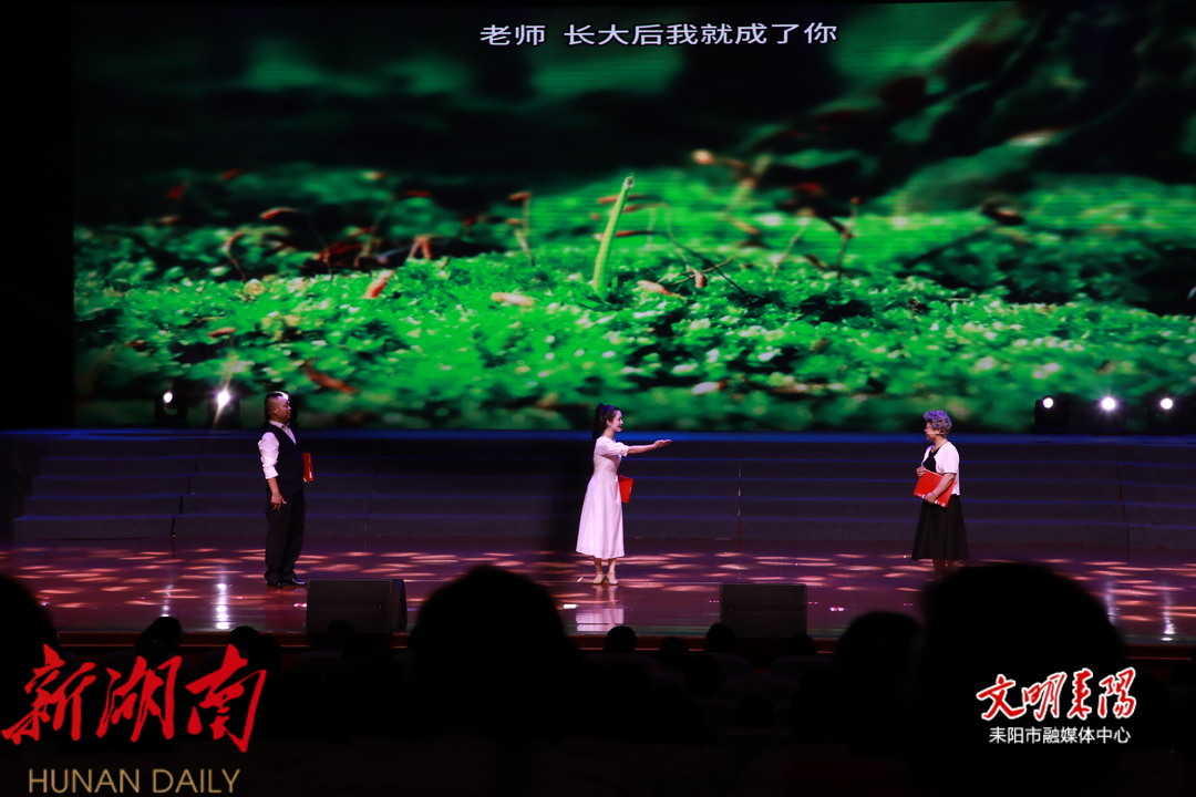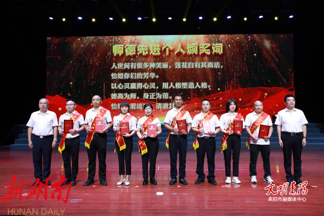 9月11日下午,耒阳市举行庆祝第39个教师节大会,表彰全市教育战线先进典型。衡阳市委副书记、耒阳市委书记赖馨正代表耒阳市“四套班子”和143万耒阳人民,向广大教师、教育工作者致以节日的问候,向受到表彰的先进典型表示热烈的祝贺,向长期以来关心支持耒阳教育事业的社会各界人士表示衷心的感谢。市委副书记、市长尹立鑫宣读表彰通报。