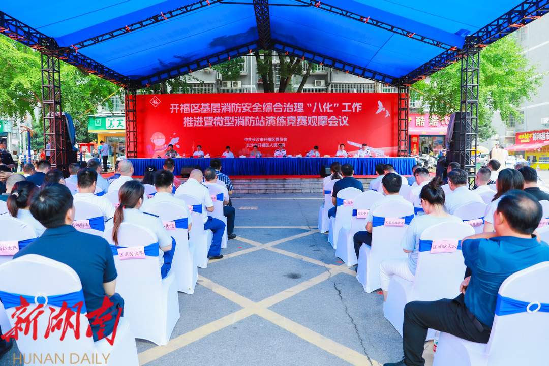 湖南日报·新湖南客户端9月12日讯(记者 彭永礼)随着城市化进程加速,为切实加强基层消防安全综合治理,今天上午,长沙市开福区召开“八化”工作推进会,组织各单位、街道主要负责人及消防工作人员,来到全区先行试点单位秀峰街道,现场观摩小区消防隐患整改案例以及社区微型消防站建设,并观看社区微型消防站大演练,学习借鉴经验,总结创新做法,切实推进“八化”工作落地见效。