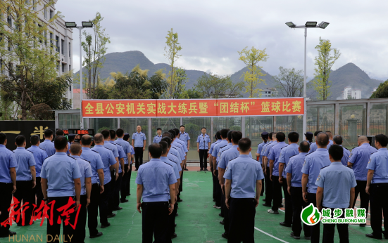 新城步客户端9月13日讯 (见习记者 王鲲 通讯员 彭玉霞)9月12日上午,全县公安机关实战大练兵暨“团结杯”篮球比赛在城步公安局篮球场揭开帷幕。副县长、县公安局局长肖勇致开幕辞。在家的局党委班子成员、6支参赛队伍、裁判员、工作人员等100余人参加开幕式。