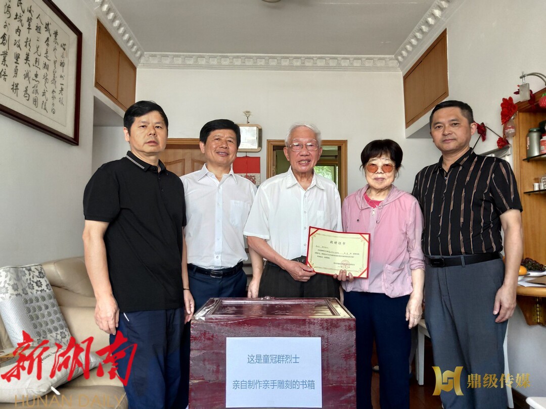 在捐赠现场,童冠群烈士家属将童冠群烈士自制自用的书箱、日记(复制品)和文件、照片资料等进行了现场交接。他们表示,童冠群烈士的遗物尤其是书箱已经伴随家人80多年,他的英雄事迹和革命精神,一直影响着家族宗亲。把文物捐赠给鼎城,让它随着烈士英灵回到出生、成长、学习、奋斗过的那片土地,也算是落叶归根、荣归故里了。