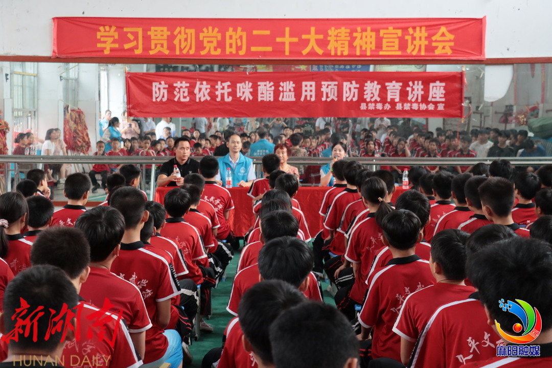“青春有力量,国家有希望。今天主要是介绍依托咪酯,让青少年认识新型毒品,有助于青少年健康成长......”活动现场,县禁毒办宣讲员黄梅对新型毒品“依托咪酯”作了详细介绍,科普“依托咪酯”“上头电子烟”等多种毒品外观、吸食后的状态以及危害等知识,增强青少年群体对此类毒品替代品的认识。通过一件件真实的缉毒案例,讲述缉毒警察舍小家为大家、英勇无畏的英雄事迹,呼吁学生们用青春之力量,书写青春誓言,唱响民族复兴之歌,珍爱生命,远离毒品,争做禁毒宣传员,将学到的禁毒知识宣传给身边更多人。