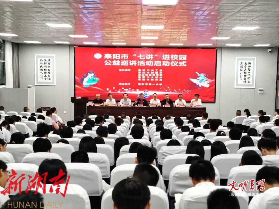 9月13日下午,耒阳市“七讲”进校园公益巡讲活动在耒阳一中拉开序幕,衡阳市关工委主任谢宏治讲话并宣布活动启动,市委副书记、政法委书记王星皓致辞,市委常委、宣传部部长蒋新星主持。