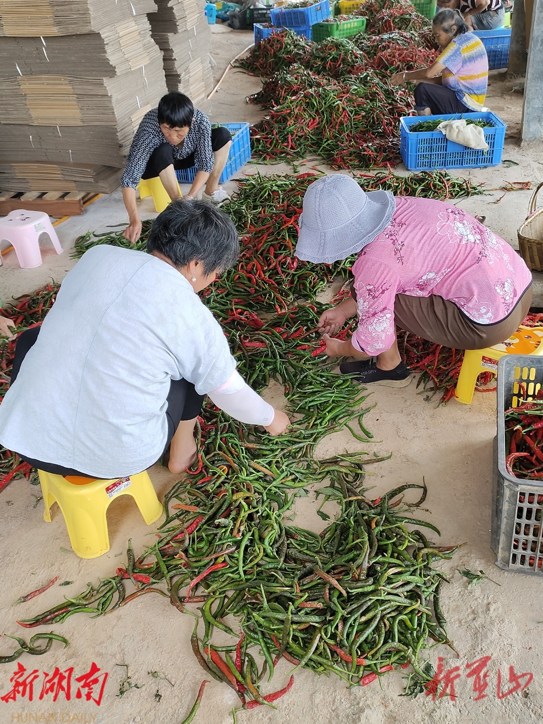 湖南日报•新湖南客户端9月13日讯 (通讯员 李辉)走进新圩镇上清涵村的辣椒种植基地,一个个或红或绿的辣椒密密麻麻地挂满枝条。20多位村民正忙着采摘、分拣、打包、搬运新鲜成熟的辣椒,田间地头一派丰收的喜人景象。