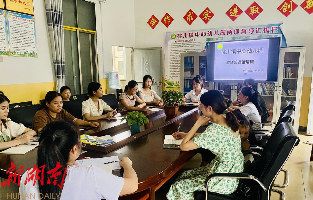 新江永客户端讯(通讯员 张丽)为响应国家推广普通话的号召,创造规范的语言环境,让幼儿在良好的语言环境熏陶下学习,桃川镇中心幼儿园开展了“推广普及国家通用语言文字 铸牢中华民族共同体意识”的推普周系列活动。