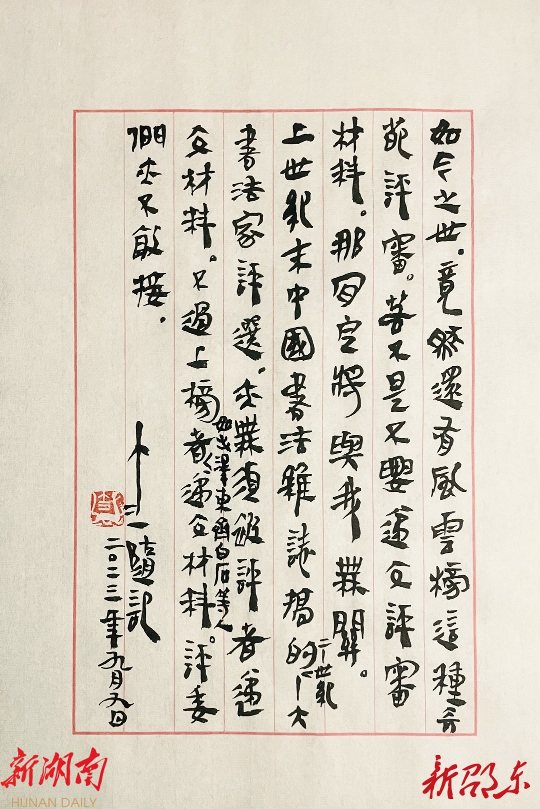 9月9日,由《书法》《书法报》《书法导报》《中国书画报》《美术报》《青少年书法报》《中国书画》《中华书画家》《书法研究》《书画研究》、中国书法网、中国书法家论坛等学术媒体单位主办,山西省忻州市文联承办的“2021-2022中国书法风云榜”评选在山西忻州揭晓,湖南省文艺评论人李哲(个三)上榜“书法批评人物”,是此 年度该 项榜单全国唯一上榜人物,他也是湖南省第一个上榜的“书法批评人物”。