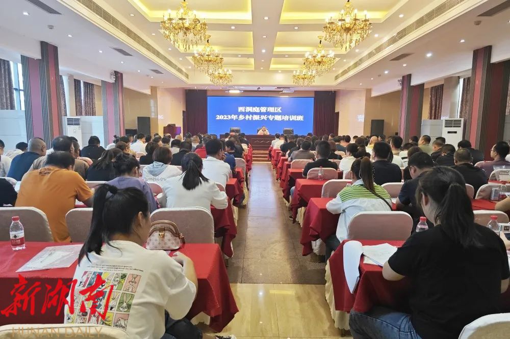 为深入学习贯彻习近平总书记关于乡村振兴的系列重要论述,强化基层干部业务能力和履职能力,9月14日,西洞庭管理区2023年乡村振兴专题培训班在鑫湖缘二楼多功能会议厅正式开班。全区各乡镇(街道) 分管负责人,村(社区)党组织书记、村 (社区) “两委”班子成员、乡村振兴驻村工作队成员、乡村振兴战略领导小组成员单位分管负责人等150余人参加培训。