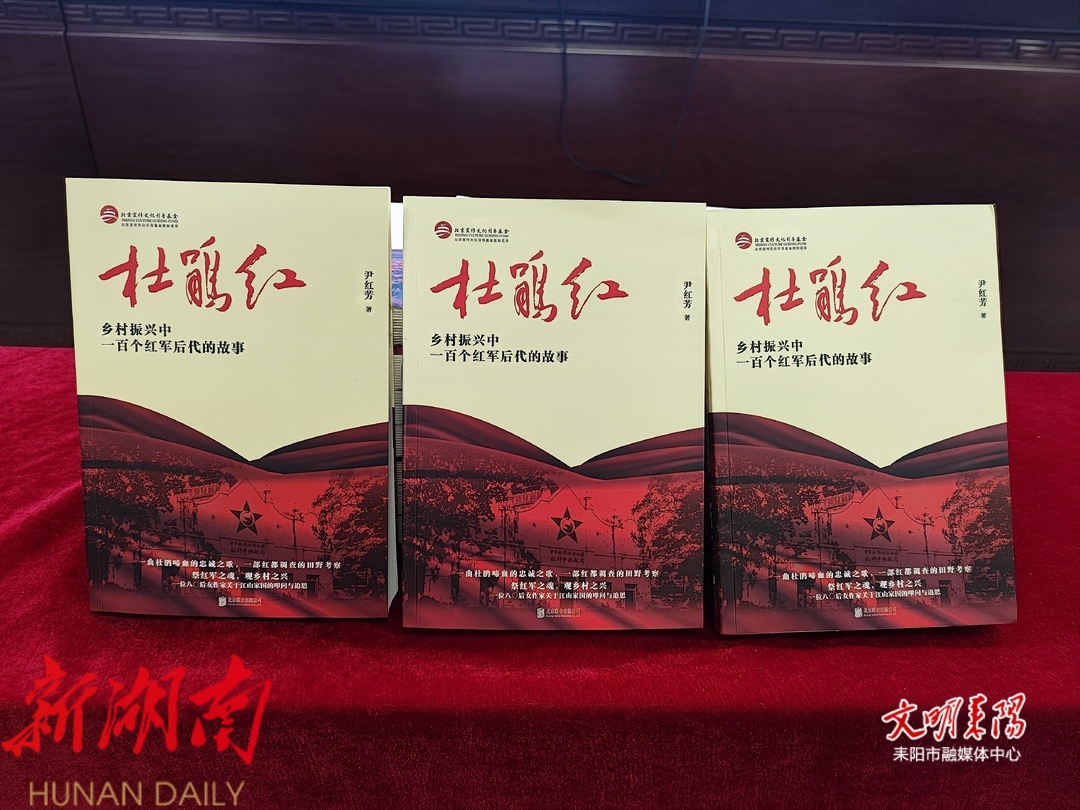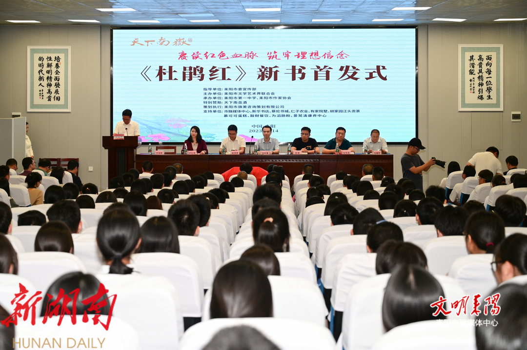 9月14日,由耒阳籍知名作家尹红芳写作的国内首部系统讲述红军后代故事的长篇报告文学《杜鹃红:乡村振兴中一百个红军后代的故事》新书首发式在耒阳一中杜甫讲堂举行。市委常委、宣传部部长蒋新星出席活动并为首发式揭幕。