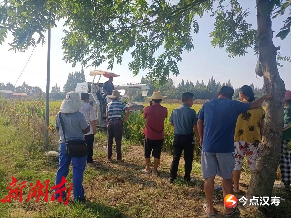 酉港镇分管负责人通过多次对接江西草编厂,9月15日引进3台半喂入式收割机,分别进入连安村、幸福村、富友村进行试验及收割工作,干部、党员、种植大户受邀到 作业现场观摩,反响热烈。