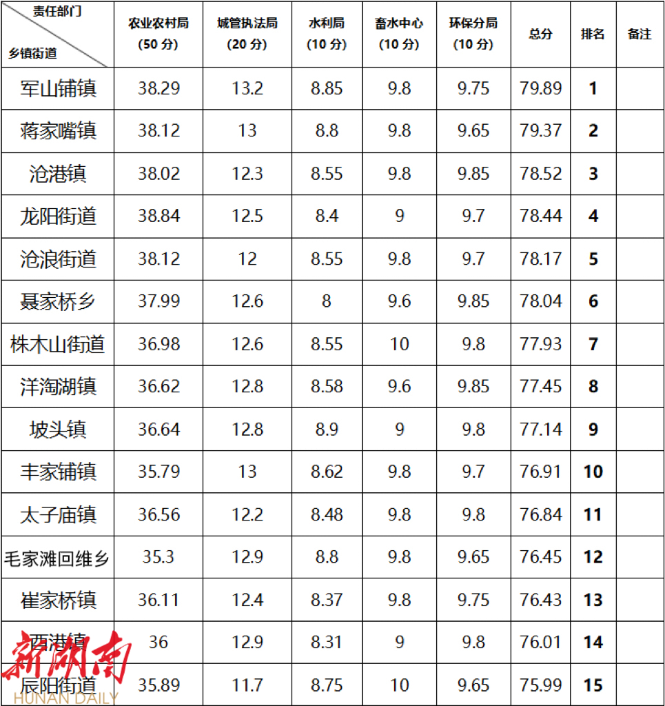 汉寿县第三季度农村人居环境整治提升工作考核综合排名及9月份“十佳十差”村(社区)考评结果出炉