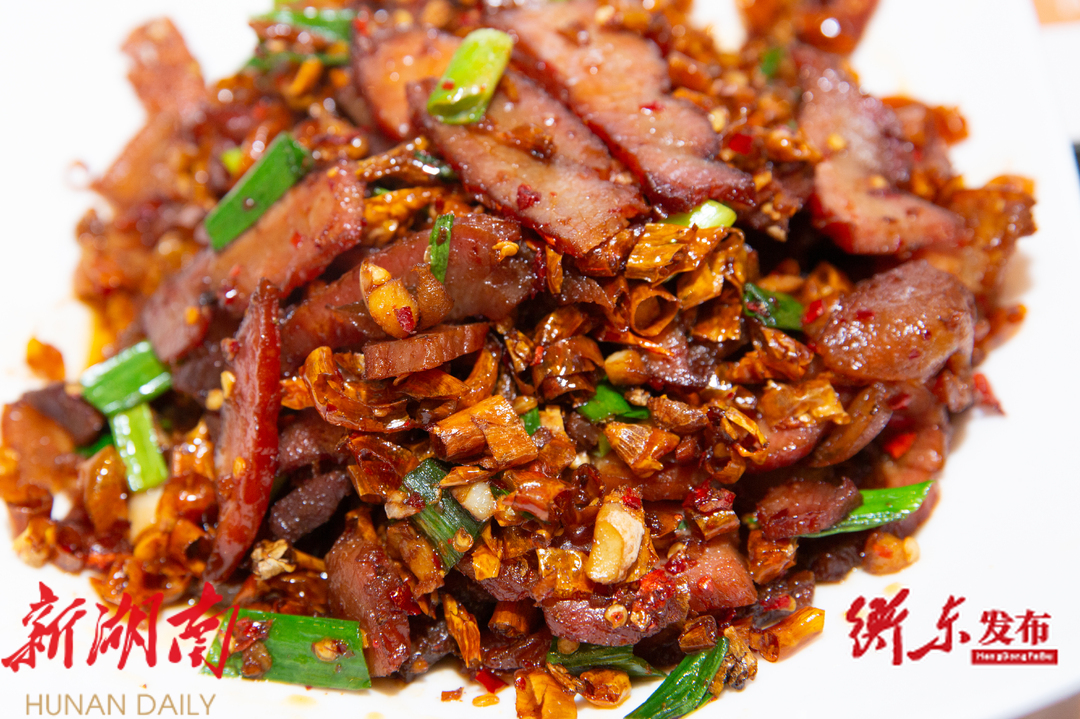 衡东土菜以“土”闻名,原料“土产”,烹饪“土制”,装盘“土式”,风味“土韵”,既融入了博大精深的湘菜风格,又极富地方风味和乡间特色,在米酒、茶油、黄贡椒等“三件宝”的加持下,形成了“鲜、辣、美、简”的独特味道,已然成为湘菜领域的一道靓丽的风景。“鲜”是衡东土菜的第一元素。“猪吃叫,鱼吃跳,隔夜蔬菜不上灶”。衡东人做家常菜,极端讲究原材料的鲜活、鲜嫩。有诗云:烹青蔬于滴露,烩畜禽于余腔。“辣”是衡东土菜的灵魂标签。不辣不为地道的衡东土菜。衡东土菜辣味来自独特配料“黄贡椒”,盛产于衡东县三樟乡,自清初始种,历经筛选,渐成名椒,其辣味是辣中带甜、辣中带脆、辣而不火、辣后留香。“美”是衡东土菜的质朴内涵。衡东土菜就像衡东人的性情,朴素好客,一瞧就觉清清爽爽、朴实自然。土菜的烹饪制作讲究本色本味,少用调色酱料,菜品清靓素净,以保证质纯味正。“简”是衡东土菜的精湛技法。“不放味精会用盐,一瓶酱油吃三年,烧酒调出香中甜。”衡东土菜恪守“一主一配”“一菜一法”的古老技艺,制作简便,痛快舒适。