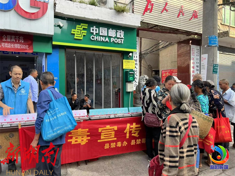 9月15日,麻阳禁毒办联合江口墟镇禁毒办、派出所、新时代文明实践所利用赶集日开展禁毒宣传。