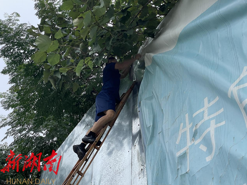 “墙上的破损广告太高了,需要消防队员们的协助!”“注意安全!我们在下面扶着梯子!”在志愿者和消防队员们的共同努力下,共计清理1000余米长,40余块破损宣传板报,有效改善了市容环境,消除了安全隐患。