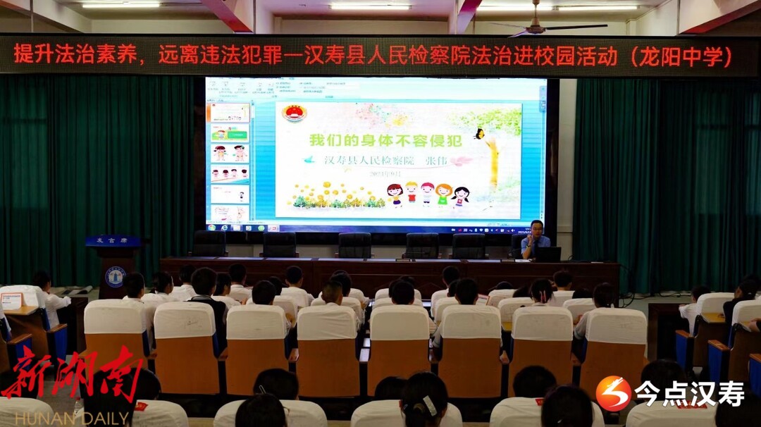 9月19日,汉寿县人民检察院第二检察部、未成年人检察办公室志愿者到汉寿县龙阳中学开展“提升法治素养 远离违法犯罪”法治进校园活动,为同学们送来开学第一堂法治课,近200名学生参加讲座。