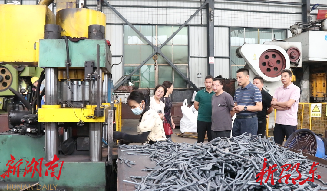 调研组一行先后视察了湖南宁庆航空航天智能装备有限公司、小巨人智能锻造有限公司和邵东市仙槎桥镇五金科技创新展示中心,了解产业升级改造、产品加工制造、邵东五金产业发展历史等情况,并听取了公司有关负责人对企业绿色工厂创建、生态环境改善、绿色发展道路建设等工作开展情况的介绍。