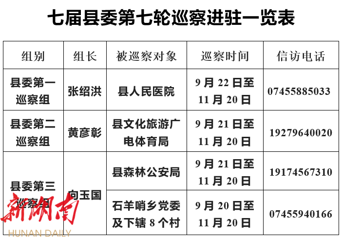 近日,七届县委第七轮巡察的3个巡察组完成对县文化旅游广电体育局、县人民医院、县森林公安局、石羊哨乡党委及下辖8个村的进驻工作,七届县委第七轮巡察全面展开。