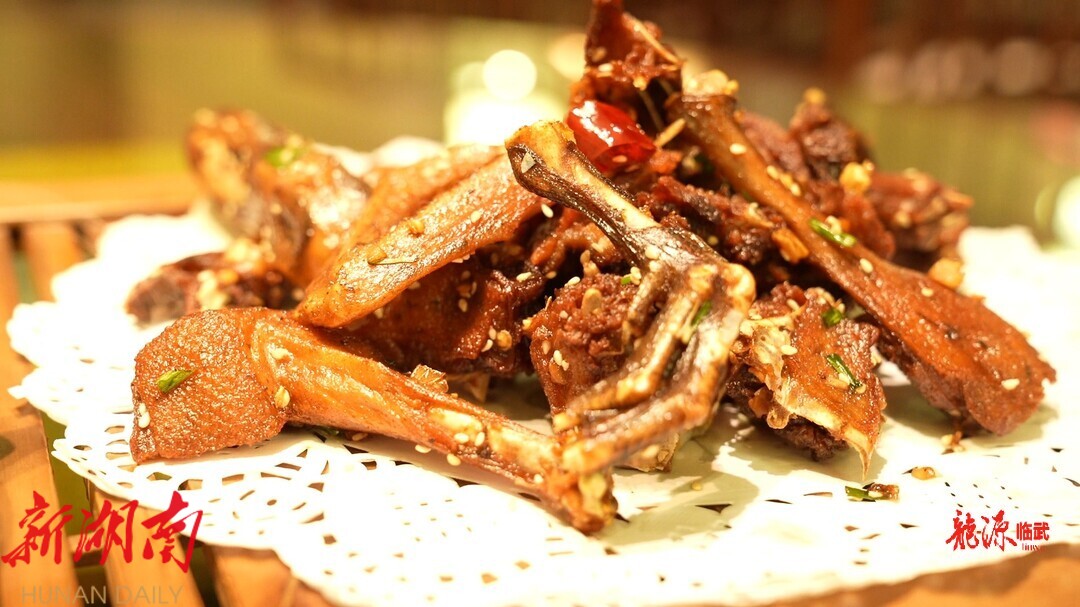 临武鸭,湖南省郴州市临武县特产,中国八大名鸭之一,有着上千年的悠久养殖历史,其做法也是多种多样,其中,临武手撕鸭是近年来当地对临武鸭菜品的一次全新尝试,鸭肉以独有的卤水浸泡,融合了干、酥、香的特点,使临武鸭香味更加浓郁独特,在让人“闻之难忘其香,食之难忘其味”的同时也为临武鸭增添了新味道。