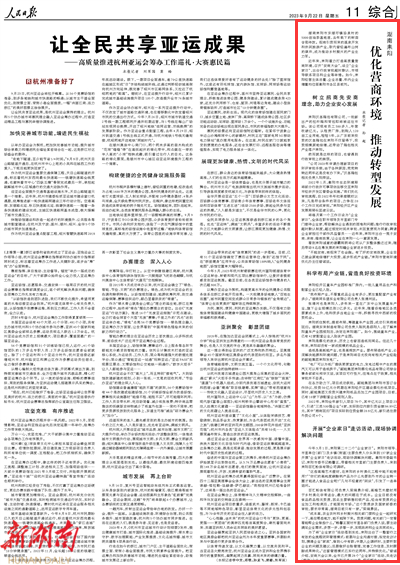 9月22日,《人民日报》以《湖南耒阳优化营商环境,推动转型发展》为题,报道了耒阳市创新举措安商助企、着力打造高质量营商环境、推动转型发展的好经验。