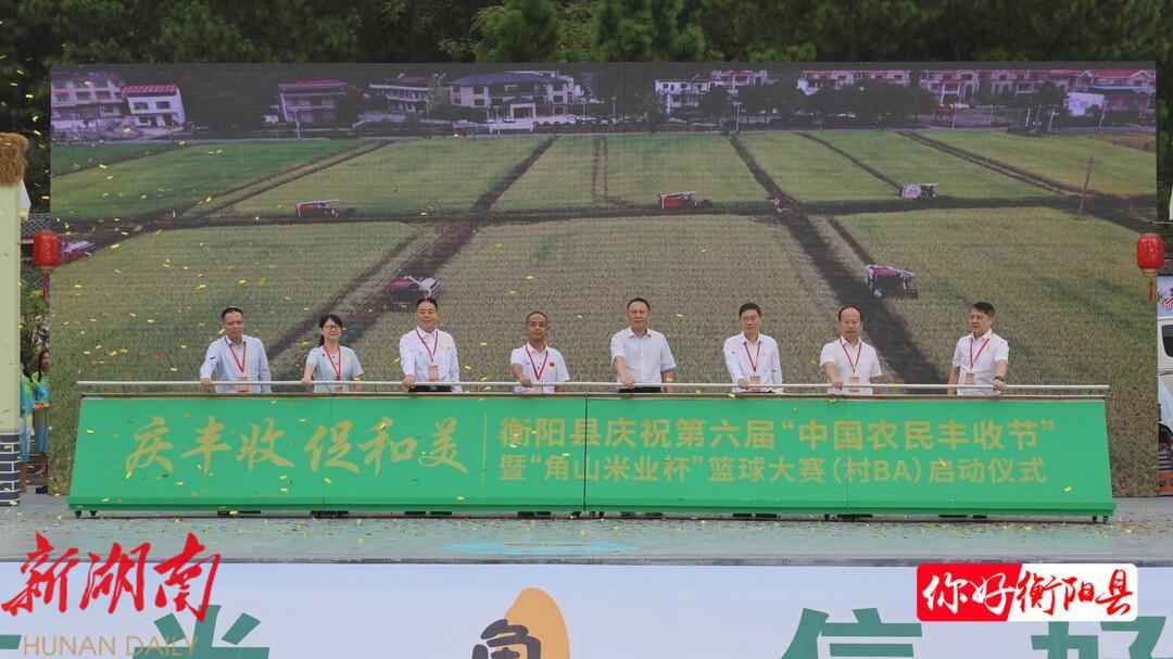 9月23日,“庆丰收 促和美”衡阳县庆祝第六届“中国农民丰收节”暨“角山米业杯”篮球大赛(村BA)启动仪式在库宗桥镇华山村举行。副市长、县委书记曾建华宣布活动启动,市政协副主席叶玉泉,县委副书记、县长孙浩,市委宣传部副部长林新华,县委副书记、统战部部长刘洋,县人大常委会主任叶强、县政协主席方云耕参加。