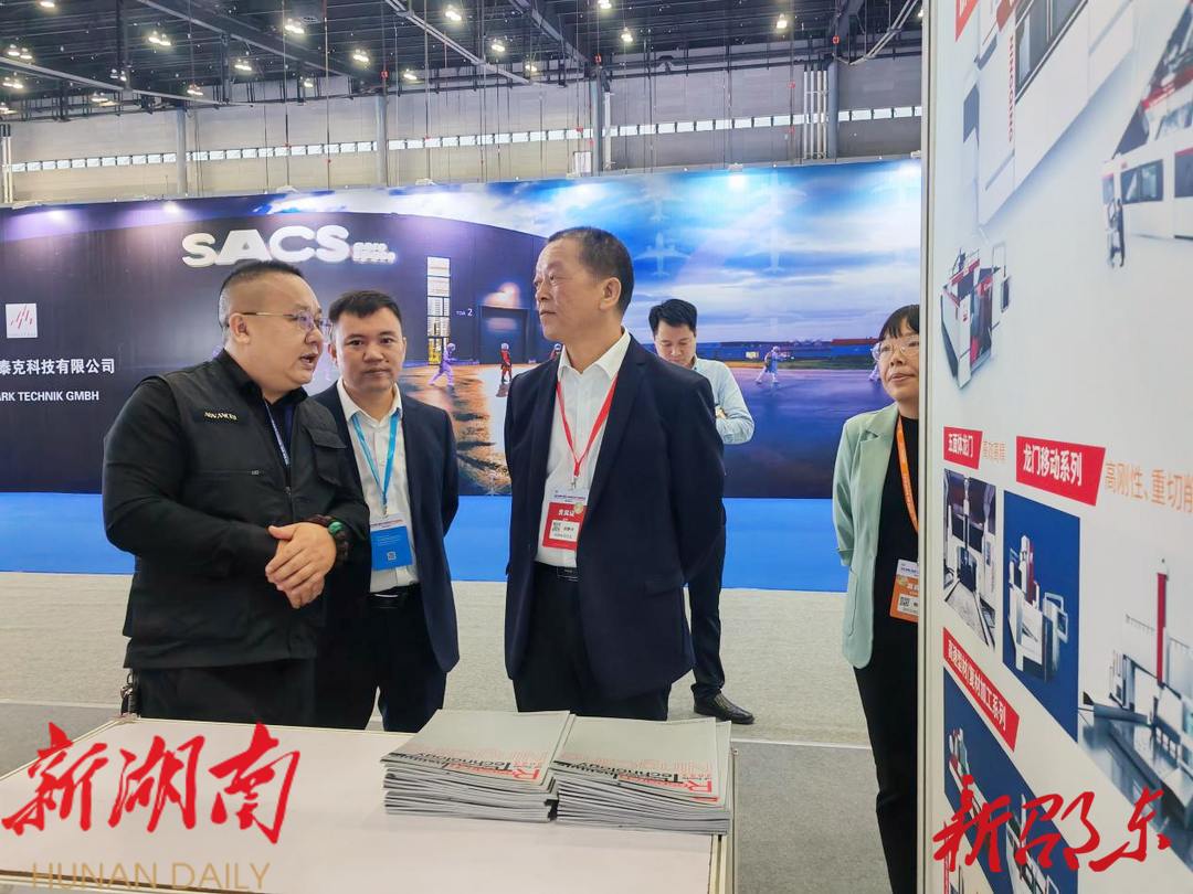 在长沙国际会展中心的W4馆邵东展区,邵东产品吸睛不少,来参观的人络绎不绝,邵东霞客乐房车、邵东醇龙箱包有限公司展示的航空旅行箱包和太阳能双肩背包、今福鸟健康科技有限公司展示的保健鞋深受观展群众喜爱,湖南宁庆航空航天智能装备公司自主研发、生产的数控装备也吸引了不少业内专业人士驻足。邵东市贸促会向参展领导和嘉宾介绍邵东市有关通航领域产品情况。