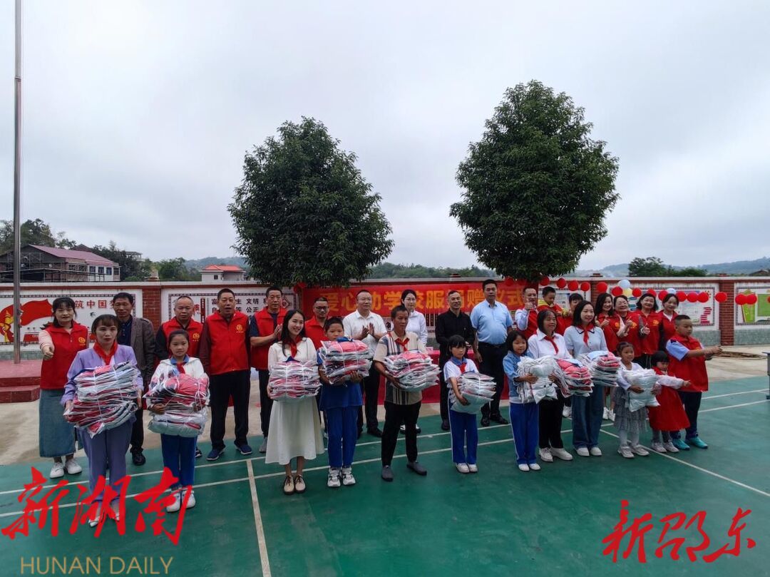 湖南四知文化研究会邵阳分会向流光岭镇槐子山小学捐赠校服