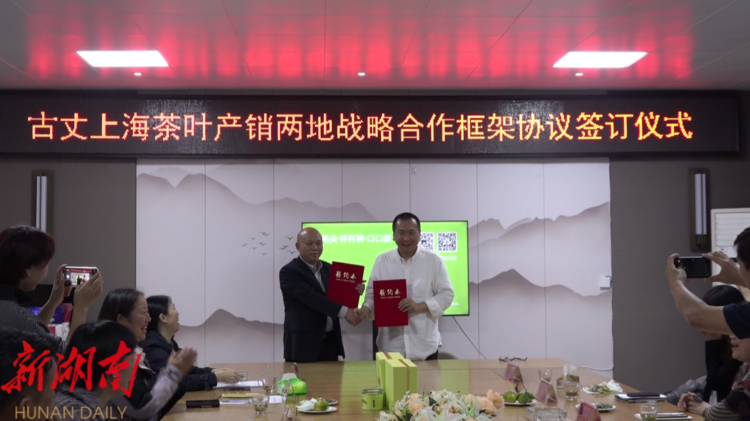 会上,双方就如何扩大销售渠道、提升品牌影响力等问题进行了探讨,并现场签订了古丈上海茶叶产销两地战略合作框架协议。双方表示,希望以此次考察为契机,增进沟通、交流和合作,助推双方茶企商户得以进一步融合,共同助力古丈毛尖走进上海市场,走入千家万户,全面提升古丈茶叶品牌的影响力和市场竞争力。