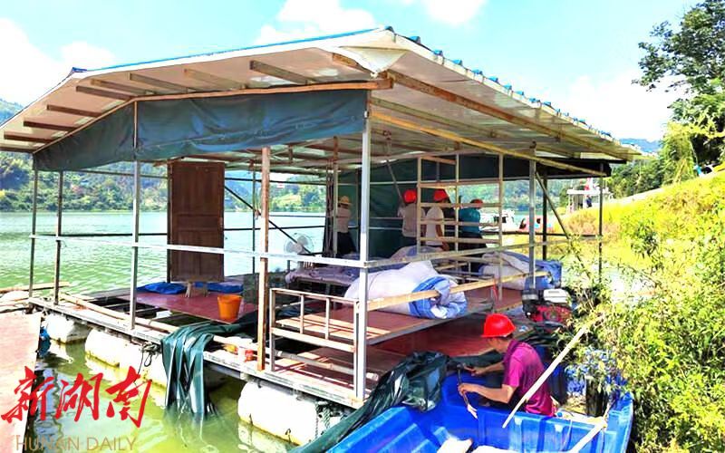 (执法人员在拆除非法钓棚)