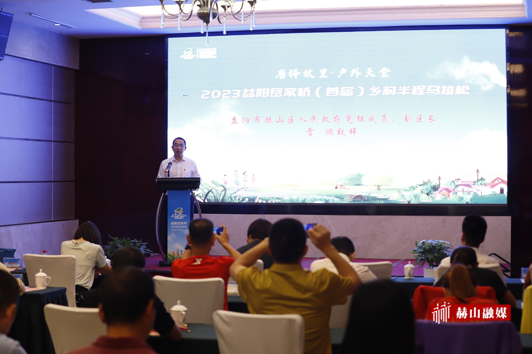 益阳市赫山区人民政府党组成员、副区长雷鹏在会上致辞,作为赛事的主办方之一,将努力将岳家桥乡村半程马拉松赛事打造成赫山体育赛事品牌,不断提升影响力,发挥赛事经济的引擎作用,持续拉动消费,促进文化、体育、旅游和乡村振兴融合发展,为振兴发展注入源源不断的新动能。