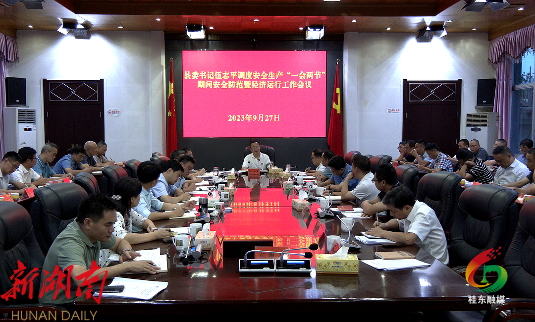 桂东县融媒体中心9月28日讯(记者 邓敏 )9月27日下午,县委书记伍志平主持召开会议,调度安全生产、“一会两节”期间安全防范暨经济运行等工作。