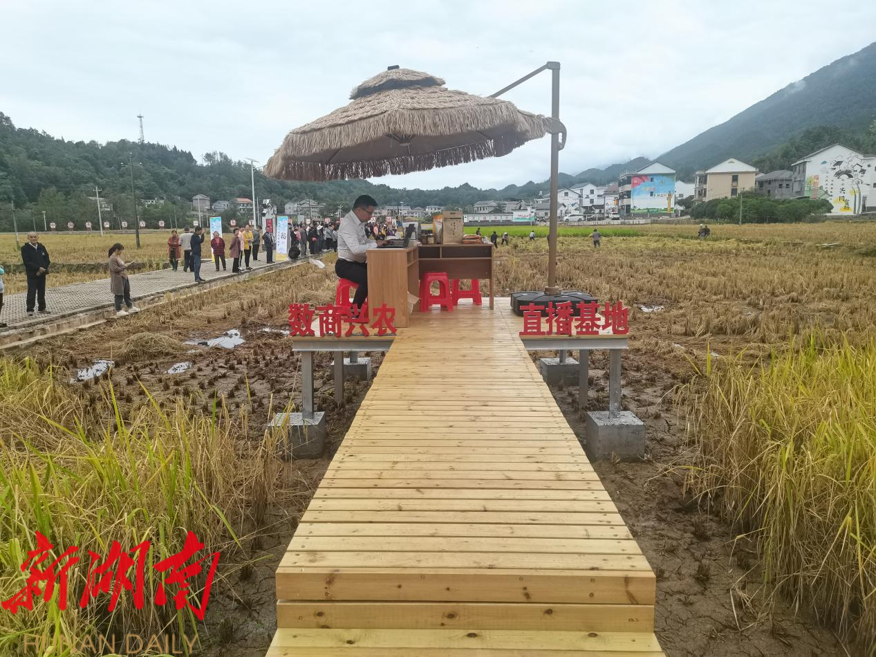 在另一旁的在新建的“数商兴农”直播基地,张家界市新阶联党支部书记、副主席卢高远通过“张家界优选”抖音直播平台现场直播助农,展示乡村美景,让张家界的优质农产品“走出大山”。据悉,东旺坪村自三月被授予张家界市“数商兴农”乡村振兴直播基地称号之后,良好的资源和环境搭上网络直播这趟快车,农旅融合获得流量加持,东旺坪村的“稻滋丰”优质生态稻米销量也节节增长。