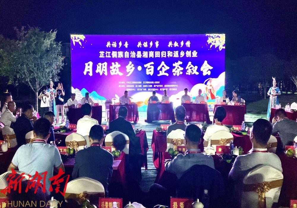 湖南日报·新湖南客户端9月29日讯(记者 刘顿 通讯员 吴俊 黄建建)同叙乡情,共谋发展。9月28日晚,中秋前夜,湖南省芷江侗族自治县湘商回归和返乡创业“月是故乡明”百企茶叙会在芷江桃花溪露营基地温情展开。