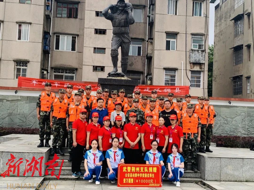 2020年7月,在武警荆州支队的支援下,南平镇易家渡险情得到控制,战士们在向群中学休整。离开前,武警官兵为向群中学的贫困学生捐款。